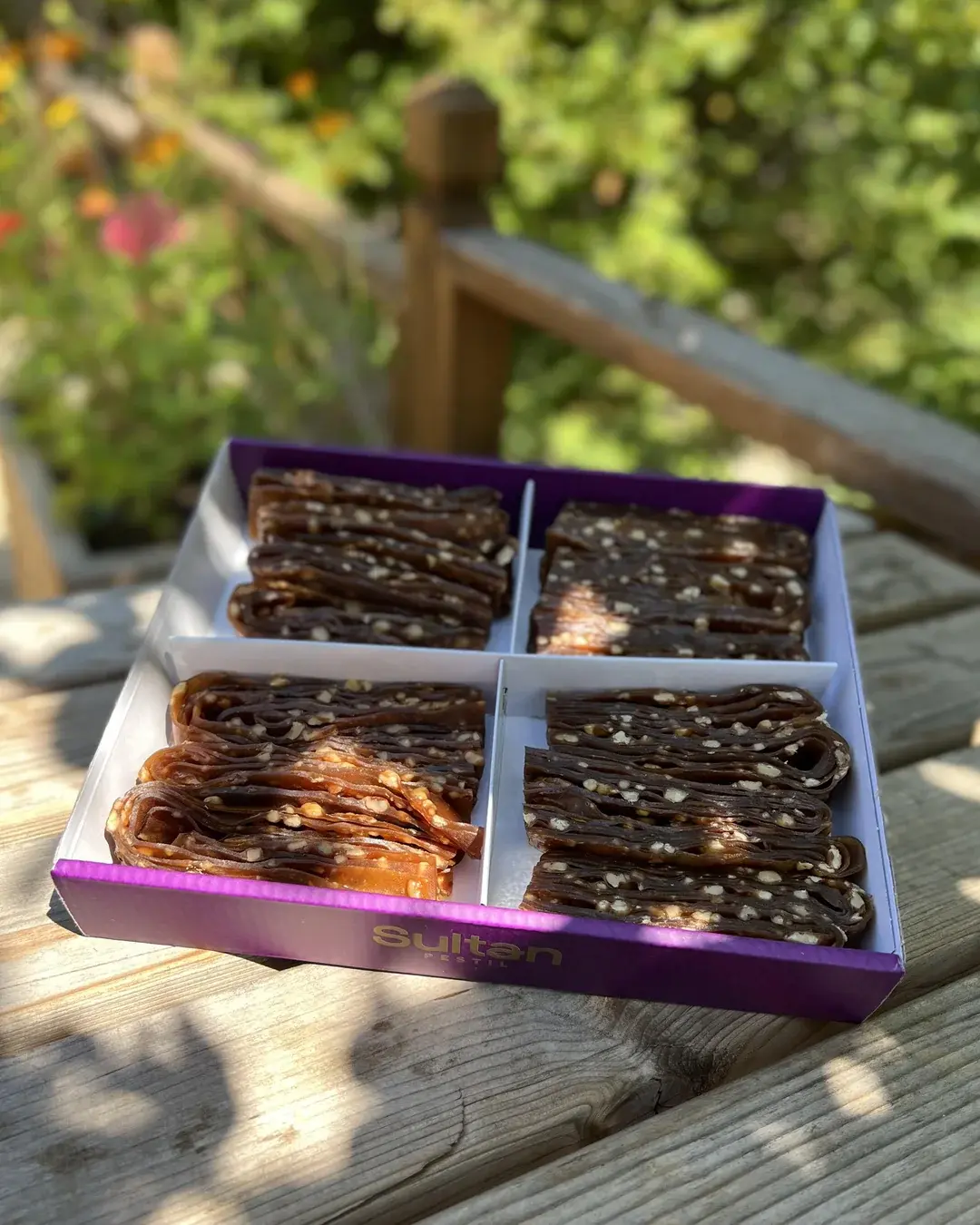 Pestilin karşı konulamaz lezzetine cevizin kendine has aroması eşlik ediyor ve ortaya adeta bir lezzet şöleni çıkıyor. Yaprak kadar ince dilimlenen cevizli pestil düşük kalorili olmasıyla kilosuna dikkat edenlerin favori atıştırmalığıdır. Tatlı ihtiyacınızı gidermek istediğiniz her an soluğu bu benzersiz lezzetin yanında alacaksınız. Tam bir demir ve selenyum deposu olan cevizli pestili sadece bir defa tadanlar bir daha asla vazgeçemiyor!